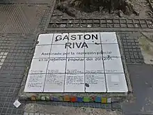 Alberto Marquez was a 57-year-old man, who while protecting his wife, was shot to death in the back by police.[19][20] This murder was recorded on camera by an amateur reporter who back then was running an online independent newspaper called El Ojo Obrero (The Worker Eye).[21] At the place where he died, there was a commemorative plaque that later was removed by the government of the city of Buenos Aires under Mauricio Macri’s administration.[22]