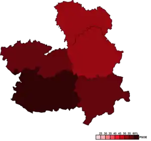 ![]() Constituency results map for the Cortes of Castilla–La Mancha | ||||||||||||||||||||||||||||||||||