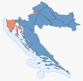 Results of the election in each of the ten electoral districts of Croatia: the party with the majority of votes in each electoral unit.