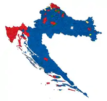 Parliamentary elections to elect all 151 members of the Croatian Parliament were held on 23 November 2003.[1] They were the fifth parliamentary elections to take place since the first multi-party elections in 1990. Voter turnout was 61.7%. The result was a victory for the opposition Croatian Democratic Union (HDZ) which won a plurality of 66 seats, but fell short of the 76 needed to form a government. HDZ chairman Ivo Sanader was named the eighth Prime Minister of Croatia on 23 December 2003, after parliament passed a confidence motion in his government cabinet, with 88 MPs voting in favor, 29 against and 14 abstaining. The ruling coalition going into the elections, consisting of the Social Democratic Party (SDP), Croatian People's Party (HNS), Croatian Peasant Party (HSS), Party of Liberal Democrats (Libra) and the Liberal Party (LS), did not contest the elections as a single bloc; the SDP ran with the Istrian Democratic Assembly (IDS), the Party of Liberal Democrats (Libra) and the Liberal Party, HNS ran with the Alliance of Primorje-Gorski Kotar (PGS) and the Slavonia-Baranja Croatian Party (SBHS), while HSS ran on its own.