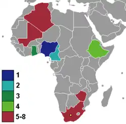 NigeriaWinners against Senegal24 July 20045 (1991, 1995, 1998, 2000, 2002)