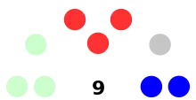 6 of the 9 seats in the Senate 5 seats needed for a majority | |||||||||||||||||||||||||||||||||||||||||