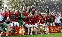 ![]() Manchester United celebrate their third Champions League title. | ||||