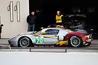 Following the announcement of the initial three manufacturers, Aston Martin Racing and Prodrive submitted a proposal to the FIA World Motor Sport Council for modifications to the existing Aston Martin DBR9 to allow customers to enter the series. The FIA would be required to make technical waivers on the DBR9 in order for it to be allowed to compete.[19] General Motors' Corvette brand also asked for a technical waiver on a modification to their 2009 Corvette C6.Rs in order to compete in 2010.[8][20] Maserati and Saleen also sought those technical waivers for their 2009 cars, but required a further waiver due to the MC12 and S7 not meeting the minimum requirement of 300 production cars for the 2010 regulations. In November 2009, the SRO confirmed their six manufacturers for the 2010 season, allowing Corvette, Aston Martin, and Maserati their technical waivers to join Nissan, Ford, and Lamborghini.[13]