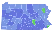 ![]() Toomey: 50–60% 60–70% 70–80% 80–90% >90% Sestak: 50–60% 60–70% 70–80% 80–90% >90% Tie: 50% No data | |||||||||||||||||