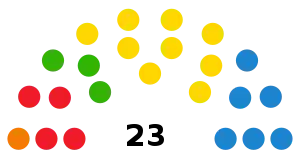 The following table lists party control in the Island Cabildos.[1] Gains for a party are displayed with the cell's background shaded in that party's colour.