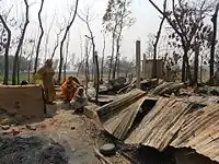 In Lakshmipur District, five Hindu-owned jewellery shops were looted and one Hindu temple attacked and looted in Chandraganj.[14] After the midnight of 28 February, one Hindu temple has been on fire in Gaiyarchar in Raipur Upazila.[14][15] The police prevented the rioters from setting fire to another temple.[15] Two Hindu monasteries were set on fire.[14] On 1 March, the miscreants set fire to a Hindu house in Char Sita area of Ramgati Upazila.[16] On 11 May, Miscreants set fire on a Hindu Temple at Ramganj Upazila.[17]