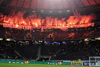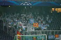 Malmö FF fans at Red Bull Arena at the away game against Red Bull Salzburg on 19 August 2014.