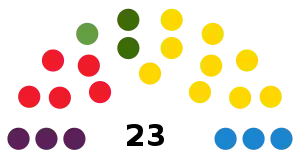 The following table lists party control in the Island Cabildos.[1] Gains for a party are displayed with the cell's background shaded in that party's colour.