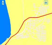 Map of the city of Chañaral. The northern sector of the city, in the upper part of Route 5 (in red), was isolated for two days, by the overflow of the river Salado.
