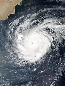 A low-pressure area formed over the Arabian Sea on October 26.[47] It slowly consolidated, prompting the IMD to classify it a depression on October 28.[48] Later the same day, the JTWC issued its Tropical Cyclone Formation Alert (TCFA) for the system, and the IMD upgraded the storm to deep depression intensity.[49][50] Further intensification ensued, causing the IMD to upgrade the system to a cyclonic storm, naming it Chapala.[51] Over the following hours, the storm intensified into a severe cyclonic storm and further into a very severe cyclonic storm.[52][53] Rapid intensification commenced and Chapala was upgraded into an extremely severe cyclonic storm on October 30.[54] On November 3, it made landfall in Yemen as a very severe cyclonic storm, making it the first tropical cyclone at hurricane intensity to make landfall in the country on record.[55] Chapala rapidly weakened over the mountainous terrain of mainland Yemen and was last noted as a low-pressure area the following day.