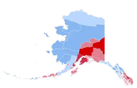 This is the first time since 1984 that a Republican won without Kusilvak Census Area, the first time since 1980 that they won without Nome, Yukon–Koyukuk Census Area, Northwest Arctic Borough, and Dillingham Census Area. The first since 1972 to win without North Slope Borough. The first ever to win without Aleutians West Census Area, Haines Borough, and Lake and Peninsula Borough.