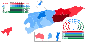 Fretilin won the most votes in the exclave of Oe-Cusse Ambeno, polling stations in Australia and Portugal, and in its strongholds of Baucau, Lautém, and Viqueque, municipalities in the east. The CNRT was the strongest force in the western part of the main state territory and in polling stations in South Korea and the United Kingdom. The PLP was the second strongest force in the municipality of Baucau and in the polling stations in Australia and Portugal, ahead of the CNRT, while the PD was ahead of the Fretilin in Cova Lima.[25]