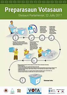 17. 1 2 "Timor-Leste/Eleições: Timorenses terão mais sítios para votar nas legislativas de 22 de julho". www.dn.pt (in European Portuguese). 22 June 2017. Retrieved 2023-01-30.