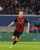 On 31 August, Haaland became the first City player in the Premier League era to score a hat-trick in consecutive league games, scoring a "perfect" one in a 6–0 home rout of newly promoted Nottingham Forest. He had scored nine goals in his first five league games, another Premier League record.[20][21]