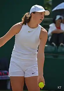 At Wimbledon, Świątek won her first and second-round matches before losing to Alizé Cornet in straight sets in round three. This ended her 37 match win streak, the longest such streak in the 21st century.[39][40]