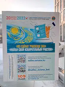 - ↑ "ҚР ОСК: сайлау учаскелерінің бәрі дайын". 24.kz (in Kazakh). 18 November 2022. Retrieved 20 November 2022.