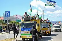For almost all major parties, most respondents said they had made their decision based on the party's programme or vision. In the case of KHUNTO, however, 30% of their supporters said they had chosen them because of family ties to their party leadership. When asked who they would like to see as prime minister, Gusmão could attribute his support to his personal background and work, while for the other politicians the reason is the party behind them. The most important issues for respondents were infrastructure development (43%), job creation (22.75%) and education (14%).[43] In mid-April, Abel de Conceição, the administrator of the municipality of Aileu, had police officers break up a public debate on "Building a new just and solidary society" at the Uma Dame Peace Centre in Aileu. The event, where representatives of different political forces were to discuss, had been organised by the Youth Movement of the Municipality of Aileu (MJMA). Conceição justified the dissolution with the given period of the election campaign and that debates between the parties could only be organised by the electoral bodies. President Ramos-Horta criticised the action and stressed the constitutional right to organise events and express their views on political issues. When asked by Virgílio da Silva Guterres, the ombudsman of the Provedoria dos Direitos Humanos e Justiça (PDHJ), Conceição expressed regret that he had not wanted to restrict citizens' rights, but only to implement the guidelines of the CNE and STAE. Guterres stressed that this was not the responsibility of the municipal administration, but of the CNE, and Miguel Pereira de Carvalho, Conceição's predecessor as Minister of State Administration, also stated that the municipal administrator had neither the power to decide on the authorisation of such events, nor could he give instructions to the police.[44]