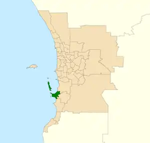 ![]() Map showing the location of the electoral district of Rockingham (dark green) in metropolitan Perth, Western Australia | |||||||||||||||||||||||||||||||||