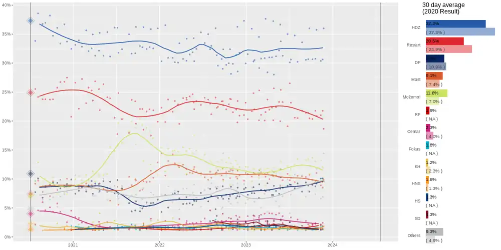 - ↑ "Možemo! na izbore izlazi samostalno: 'Istraživanje je pokazalo da stranke tako dobivaju više glasova'" [We can! goes to the elections independently: 'Research has shown that parties get more votes this way']. Večernji list (in Croatian). 27 June 2023. Retrieved 30 December 2023.