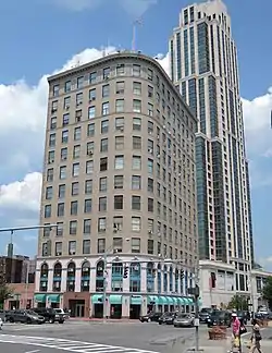 This was the tallest building in Westchester County when it was built in the 1920s. It was originally called the "Pershing Square Building", derived from its location on Pershing Square at the intersection of North Avenue and Huguenot Street. The building is located on the site of the former "Besley's Tavern", a Revolutionary War-era establishment where town meetings were held in 1773–1776. George Washington had once lodged at the tavern on a trip through New Rochelle. The building was developed, built and owned by Harry Schiff & Son, prominent New York developers who erected and owned numerous buildings in New Rochelle and New York City. It was later renamed "Kaufman" by a later landlord, the owner of Kaufman Studios in Queens, New York.[4] Paul Terry established his animation company Terrytoons here in 1934. The firm created such well known characters as Mighty Mouse and Heckle & Jeckle, in the building until 1949 when it relocated to a nearby downtown location.[5] WVOX-AM 1460 maintained studios and offices here for decades.