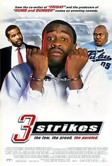 3 Strikes is a 2000 American comedy film written and directed by DJ Pooh, and starring Brian Hooks, N'Bushe Wright, Faizon Love and David Alan Grier. Despite some commercial success, it was negatively received by critics. The title refers to California's habitual offender law, whereby three convictions confer an automatic life sentence.