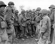 A lieutenant of the 385th Infantry Regiment of 76th Infantry Division gives a briefing to subordinate soldiers near Speicher (6 March 1945).