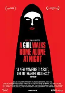 A Girl Walks Home Alone at Night (Persian: دختری در شب تنها به خانه میرود Dokhtari dar šab tanhâ be xâne miravad) is a 2014 Persian-language American Western horror film[4] written and directed by Ana Lily Amirpour. Promoted as "The first Iranian vampire Western", it stars Sheila Vand, Arash Marandi, Mozhan Marnò, Marshall Manesh, and Dominic Rains. It was financed in part by a crowdfunding campaign on Indiegogo.