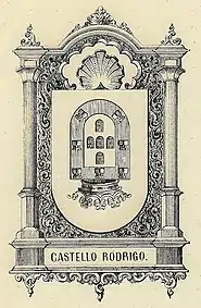 The old coat of arms of the Portuguese town of Castelo Rodrigo, consisting of the coat of arms of Portugal inverted for the town's treachery in the 1383–1385 Crisis