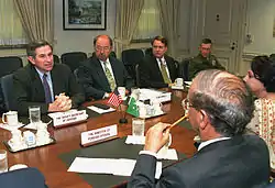 In 2001, Sattar coordinated an emergency meeting with US National Security Adviser, Condoleezza Rice, which many of his attendees described as a "rough meeting."[8] Sattar worked on normalizing relations with the United States even as before 9/11 attacks in the United States in 2001. After the US demands to Pakistan to provide utmost co-operation on War on terror, Sattar later described the co-operation policy as: "We agreed that we would unequivocally accept all US demands, but then we would express our private reservations to the US and we would not necessarily agree with all the details."[8]