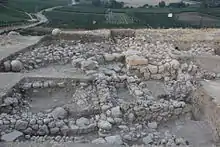 In May 2012, a four-day survey was conducted, combining an extensive walking survey with limited shallow (up to 10 cm) excavation in six areas spread around the site.[10] The survey showed that there was occupation in the Early Bronze [EB] II-III, Middle Bronze [MB] II, Late Bronze [LB]I-II, Iron Age I-II, Persian, Hellenistic, Byzantine, Early Islamic, Crusader, Mamluk and Ottoman periods. The survey also revealed that the lower part of the tell in the south has an outcropping of bedrock running through much of its center, indicating that the ancient remains in this part of the site should be sought around its perimeter.