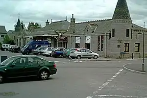 The Deeside Railway had originally intended to build its railway to Aboyne but it was reincorporated in 1852 with powers only to build as far as Banchory. A second company, the Deeside Extension Railway, was incorporated in 1857 to continue the line to Aboyne where it opened the station on 2 December 1859 as its terminus.[1][2] The line was extended to Ballater by a third company, Aboyne and Braemar Railway, which opened on 17 October 1866 when the station ceased to be a terminus.[3]
