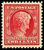 The statue's head was used for the commemorative postage stamp issued on the 100th anniversary of Lincoln's birth in 1909.[14]