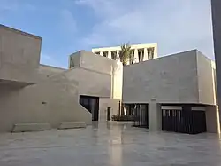 The three cubic houses of worship sit upon a secular visitor pavilion,[12][13] and aim to represent the diverse worshippers, residents, and visitors of Abu Dhabi. Adjaye highlighted that he wanted to “create a building that starts to dissolve the notion of hierarchical difference – it should represent universality and totality – something higher, that enhances the richness of human life".[12][14] The design of this religious complex comprises three unaligned cubes sitting on a plinth, and each of them has a different orientation.[13] The silhouette of the building makes the cubes look unified, and each of them is illustrated with colonnades, screens and vaults.[13] The site also includes a cultural center that will promote the values of mutual respect and peaceful coexistence while the unique character of each faith is preserved.[5]