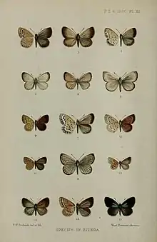 - ↑ "Afrotropical Butterflies: Lycaenidae - Tribe Polyommatini (part 1)". Archived from the original on 2013-12-13. Retrieved 2012-07-10.
