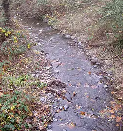 Adobe Creek drains an area of about 10 square miles (26 km2).[1] Its headwaters lie in Lafferty Ranch, a 270-acre (1.1 km2) parcel of land owned by the City of Petaluma since 1995. Lafferty Ranch has been proposed for a wilderness park, but is not accessible to the public.[4] Petaluma Reservoir (which formerly provided water for the city of Petaluma) is located in the Adobe Creek watershed.