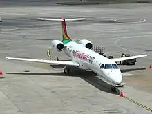 An Africa World Airlines ERJ-145LR at Nnamdi Azikiwe International Airport in Abuja