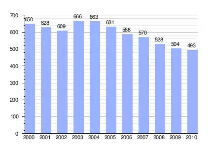 Vertical bar chart demographic of Aguilar del Río Alhama between 2000 and 2010