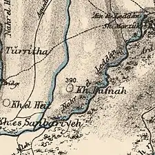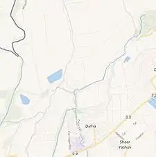 In 1881 the Survey of Western Palestine identified Khirbet Dufnah, meaning "the ruin of Daphne (oleander)", which they marked on their map in the place where Al-Shawka al-Tahta was to stand later, about 1km NNW of present-day Dafna.[3]