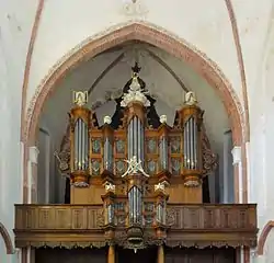 II/p | 20 | Hinsz added new pipework to the Hauptwerk (Great) division of an organ from 1562. In 1803, H.H. Freytag replaced the pipework of the Rückpositiv |