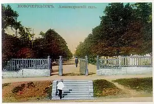 Alexander Garden (Russian: Александровский сад, tr. Aleksandrovsky sad) is a central urban park in Novocherkassk, Rostov oblast, Russia, named after Emperor of Russia Alexander I. It is the eldest park in the city. The park was established in 1832 on 9 ha city-owned land. It is located in the south-east of Novocherkassk between Platovsky avenue (Alexander Garden North), Aleksandrovskaya street (Alexander Garden South), Pushkinskaya (Alexander Garden West) and Atamanskaya street (Alexander Garden East).