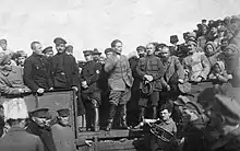 Born at Chernobyl, son of a Jewish shop assistant, he joined an illegal Marxist group as a teenager in 1896,[1] and the Russian Social Democratic Labour Party soon after it was founded. He was arrested in 1898 and briefly imprisoned, before being exiled to Nikolaievsk where he met Leon Trotsky. After his release he returned to the Ukraine where he joined Martov in political agitation and organised a workers association in Ekaterinoslav. He was again arrested and imprisoned in 1901. On his release he found himself under constant police surveillance and in November 1902 escaped to Berlin to avoid exile in Siberia. In March 1903, he emigrated to the USA. His first job there was as a house painter. Later, he became a headmaster.[2] He joined the Socialist Labor Party of America and worked as an agitator for the American Federation of Labor. Later he started studying at the University of Chicago at the Law School. In 1912 Alexander Krasnoshchyokov graduated from the university and started to work as lawyer. He defended striking workers in the 'Bread and Roses Strike' of 1913.[3] After the February Revolution, he decided to return to Russia, travelling by ship from Vancouver via Japan, where he was interviewed by agents of the Russian Provisional Government.