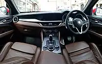 The car's engine lineup is similar to that of the Giulia's, with a turbocharged 2.0-litre inline-four and a 2.2-litre diesel inline-four. The Quadrifoglio trim level offers a 2.9 litre 690T twin-turbo V6 rated at 510 PS (375 kW; 503 hp), developed for Alfa Romeo by Ferrari.[16] In Europe, consumption standards use the WLTP measuring system, which increases accuracy for consumption and emission figures. On 29 September 2017, a Quadrifoglio model set a Nürburgring lap time of 7 minutes, 51.7 seconds, the fastest for a production SUV.[17]