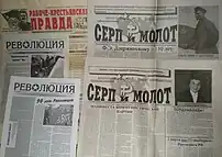 | Newspaper | Serp i Molot (Sickle and Hammer), Raboche-krest'yanskaya pravda (Workers' and Peasants' Truth) Vpered (Forward) |