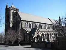 It was designed by Sir George Gilbert Scott, and is the last church he designed before his death in 1878: his son, John Oldrid Scott, took over the supervision of the building.[3] The foundation stone was laid in September 1876; the church was consecrated on 29 January 1880.[3]