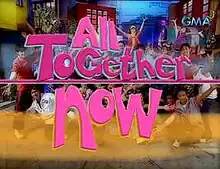 All Together Now is a Philippine television situational comedy series broadcast by GMA Network. Directed by Al Quinn, it stars Christopher de Leon, Johnny Delgado, Edgar Mortiz and Pops Fernandez. It premiered on October 21, 2003 on the network's KiliTV line up. The series concluded on September 7, 2004 with a total of 47 episodes. It was replaced by Bahay Mo Ba 'To? in its timeslot.