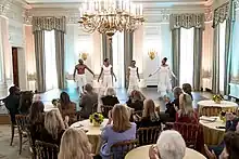 The Alvin Ailey American Dance Theater has performed for an estimated 25 million people in 48 states, as well as 71 countries on six continents. Among these performances are included two South African residencies. The company has often been an ambassador for American culture, starting with President John F. Kennedy's Southeast Asia tour program. The troupe toured southeast Asia and Australia in 1962, and performed in the International Arts Festival in Rio de Janeiro, Brazil, in 1963. They performed at the first World Festival of Negro Arts in Dakar, Senegal, in 1966. In 1968, AAADT performed at the Edinburgh Festival, earning awards for "best choreographer", and "best company". They were also awarded "best male dancer" at the International Dance Festival in Paris in 1970, the same year that they did a six-city tour of the USSR.[2] The company and its dancers and artistic staff have been recognized as cultural ambassadors numerous times, as in the 2001 awarding of the National Medal of Arts to both Judith Jamison and the Alvin Ailey Dance Foundation.[25] In 2008, the United States Congress passed a resolution officially designating the company a "vital American Cultural Ambassador to the World."[26][27][28]