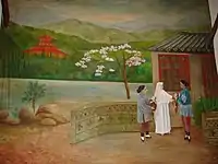 Saint Amandina at her mission post in Taiyuan, China. (Painting in the choir of the "Chinese Chapel" in the Amandina museum)