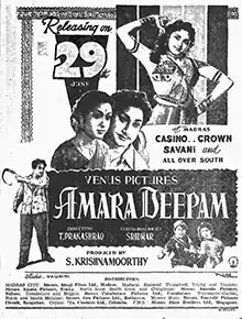 Amara Deepam (transl. The Eternal Lamp) is a 1956 Indian Tamil-language romantic drama film directed by T. Prakash Rao. A remake of the 1942 American film Random Harvest, it stars Sivaji Ganesan, Savitri and Padmini. The film, produced by Venus Pictures, was released on 29 June 1956. It was remade in Hindi as Amardeep (1958).[2][3]