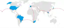 On 23 March 2012, it was announced that Canal+ had acquired the format for a French version of the show. Filming started on 30 June 2012 in Paris. Teams travelled to seven countries for 24 days, spanning over 50,000 kilometres (31,000 mi) in five continents, finishing on 23 July at the Stade de France.[3][4] This season visited the United Arab Emirates, Thailand, Japan, the United States (making it the first foreign version of the show to visit this country), Brazil and South Africa. Among the highlights are a leg in the streets of Bangkok, an African safari, an excursion to Iguazu Falls and the beaches of Rio de Janeiro. Teams also visited Tokyo, Dubai, Los Angeles, Hawaii and Cape Town.